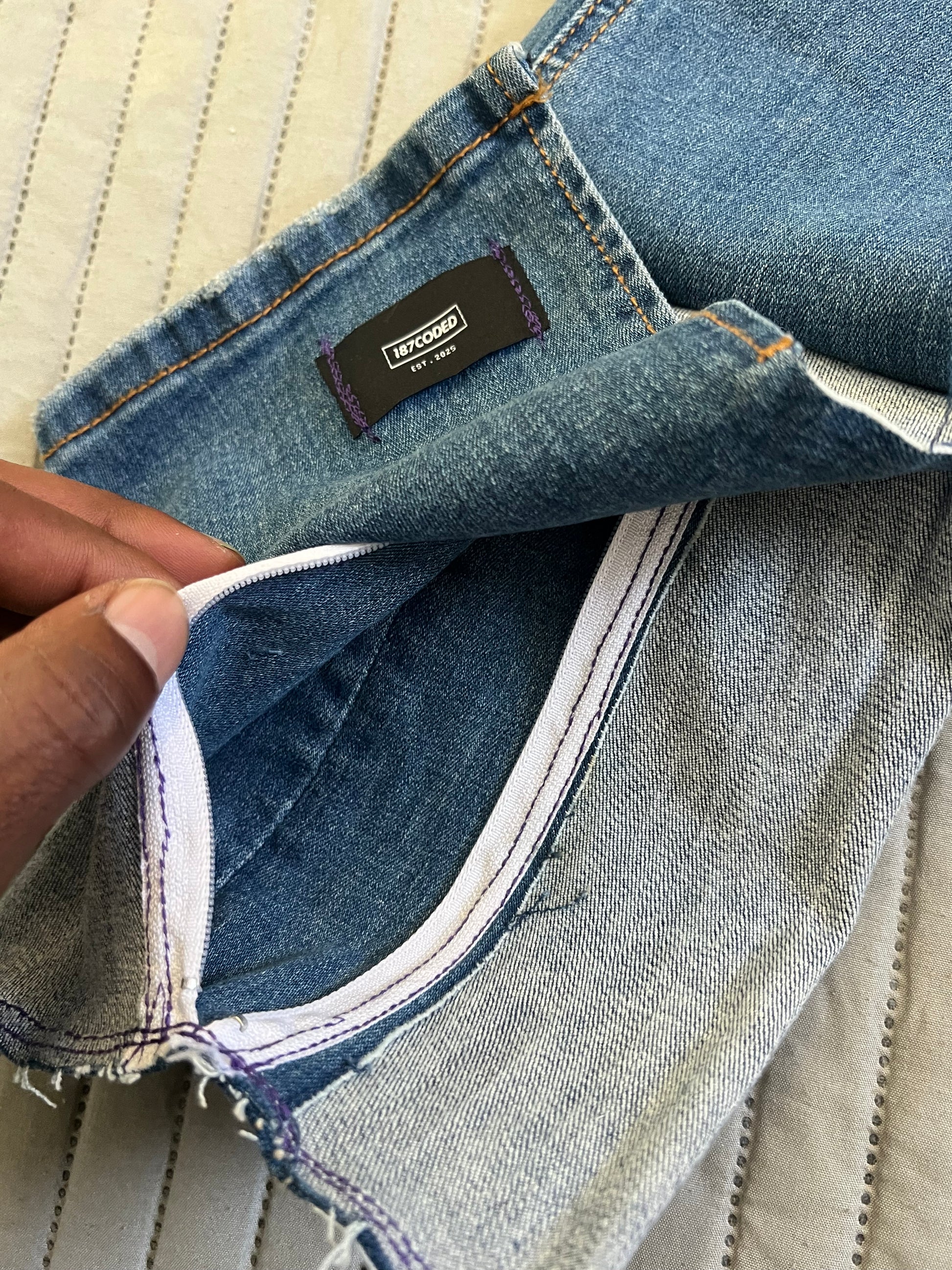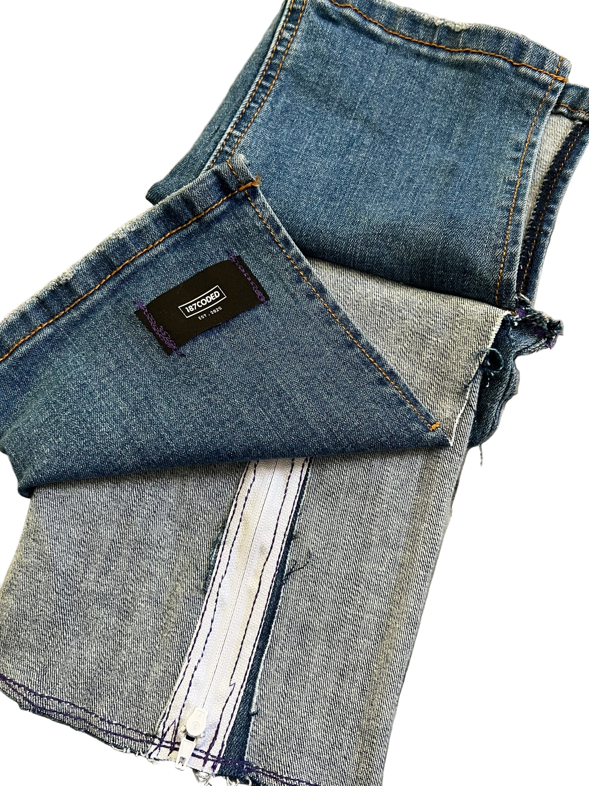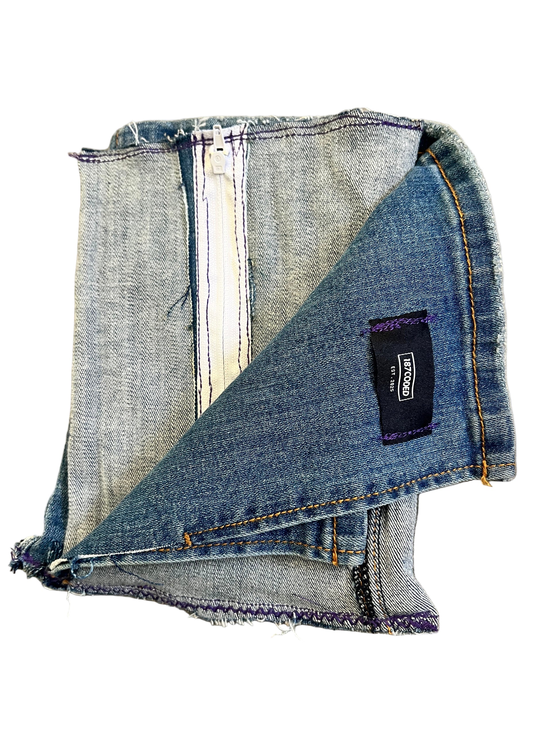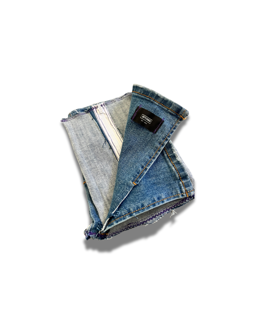 Part of 187coded’s newest collections, the Invertia piece is handmade from vintage denim offcuts, making every pouch completely unique in shade, texture, and stitchwork. Whether used as a carry pouch, statement accessory, or collector's item, Invertia is a wearable contradiction—a utility item turned conceptual artifact.